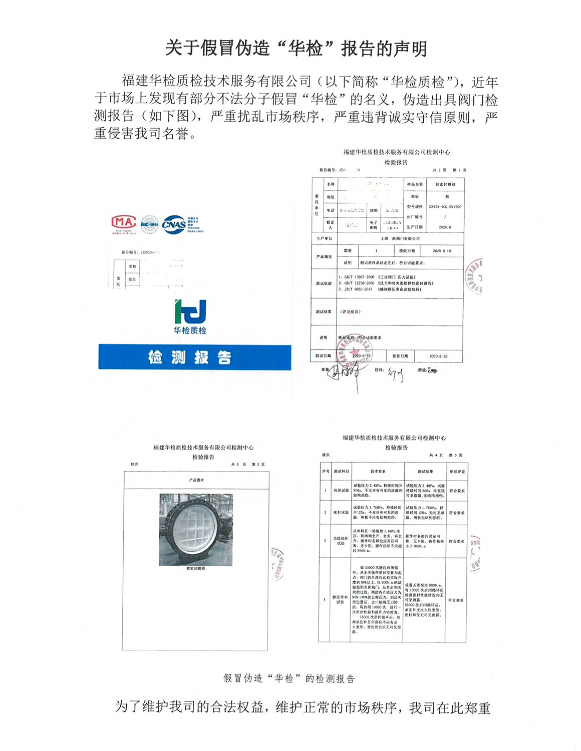 關(guān)于假冒“華檢”報(bào)告的聲明