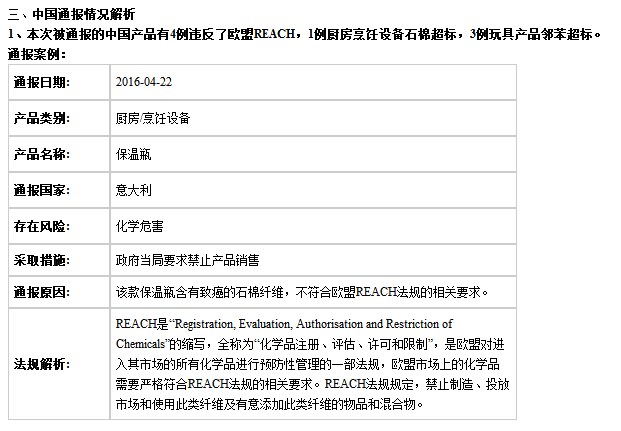 歐盟非食品快速預(yù)警系統(tǒng)通報(bào)2016年第17周(04.23-04.29)